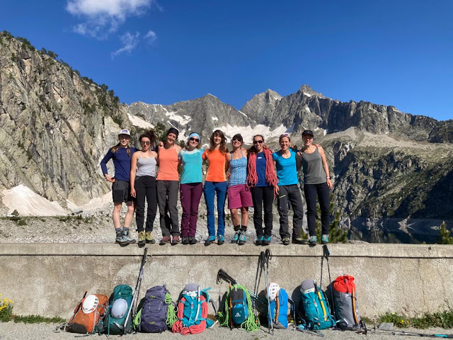 L'EPAF se retrouve en petit comité pour cette sortie. Pauline est au Congo en mission. Angélique est retenue par son travail jusque trop tard pour venir de Nîmes. Thelma est en Croatie. Mais Ilona, Charlotte, Marianne, Sophie, Coco et Lara sont là. Et ... Laura est en super phase de récupération après son opération des croisés : elle ne pourra pas grimper mais elle est quand même de la partie et ça fait plaisir de la retrouver!